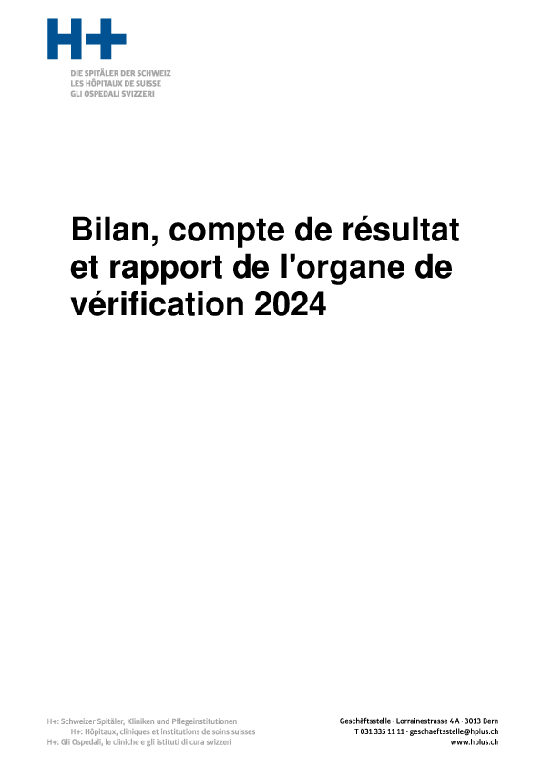 Le compte de résultats montre que H+ clôt l'exercice 2024 avec un bénéfice de CHF 524'599, contre une perte budgétée de CHF -469'181.